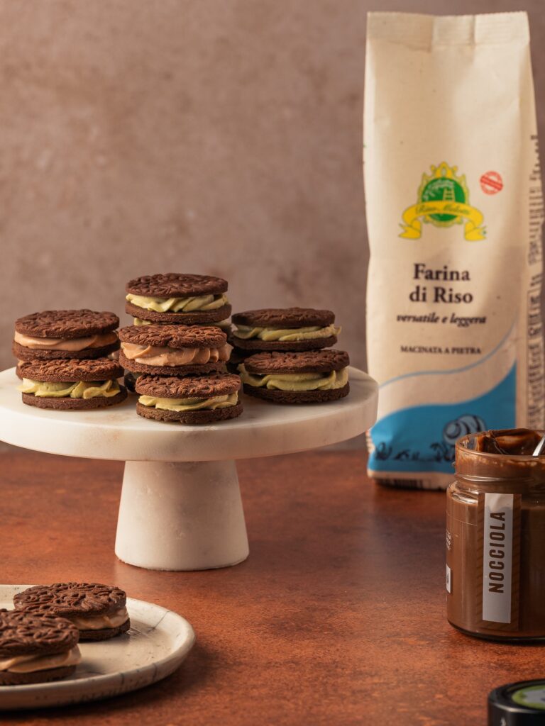 Su un frollino distribuirvi una generosa quantità di crema di mascarpone, appoggiare sopra un altro frollino. Servire o conservare in frigorifero.